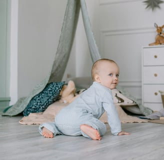 Percepção Espacial e Exploração: O bebê começa a explorar o espaço de forma mais ativa, movendo-se de um lugar para outro. Ele começa a entender melhor a relação entre ele mesmo e os objetos, além de começar a desenvolver a noção de profundidade e distância.